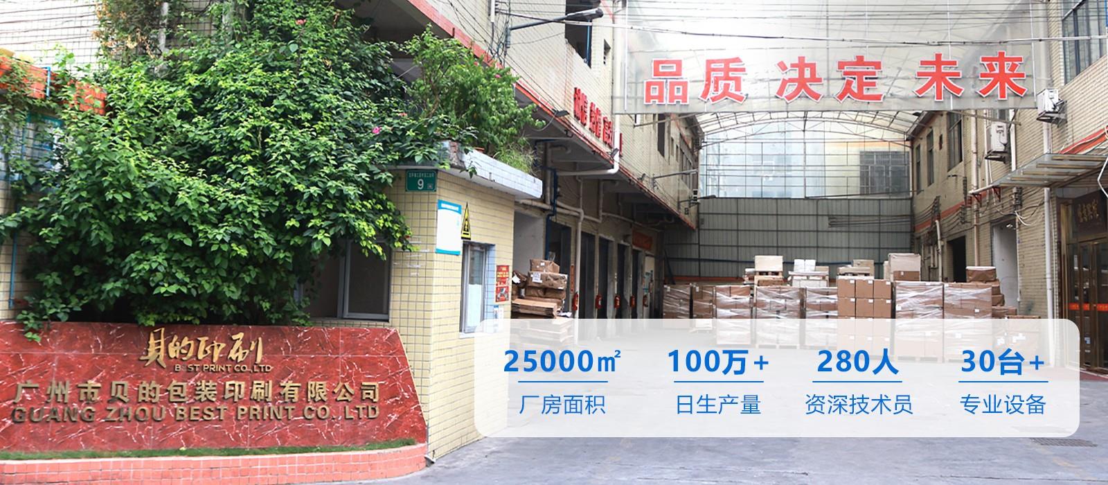 廣州市貝的包裝印刷有限公司是一家專業生產各行業彩盒,標簽,說明書,禮盒包裝的企業。公司成立于2008年8月25,注冊資金501萬,注冊地址位于廣州市白云區夏茅二社新工業區B1棟,廠房面積25000余平方米,是一家集設計,研發,造紙,印刷,售后服務一體化的大型包裝企業。公司員工300余人,日產彩盒150萬,套盒3萬個以上。經過多年努力公司成為廣東省專精特新,高新創新企業,通過了ISO9001國際質量體系認證,FSC認證,SGS認證,是廣東省政府市定點采購單位,廣東放心消費認證單位。